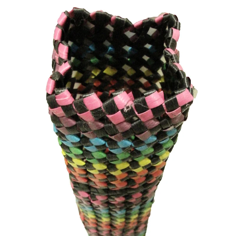 اگر نگاهی به این محصول بسیار زیبا و سنتی بیاندازید در نگاه اول متوجه بافت بسیار زیبا و محکم آن خواهید شد که به زیبایی هر چه تمام تر در کنار یکدیگر و آن هم با رنگ آمیزی های متنوعی قرار گرفته اند. ارتفاع این محصول به 65 سانتی متر و قطر دهانه ورودی آن به 10 سانتی متر می رسد، همچنین این محصول درپوش و حفاظ بسیار مناسبی دارد که بر روی آن قرار می گیرد و به موجب آن از ریزش سیخ ها به خارج از محفظه جلوگیری می کند، این موضوع را مدنظر داشته باشید که به دلیل استفاده از بافت تسمه به هیچ عنوان شاهد پارگی در این محصولات نخواهید بود.
