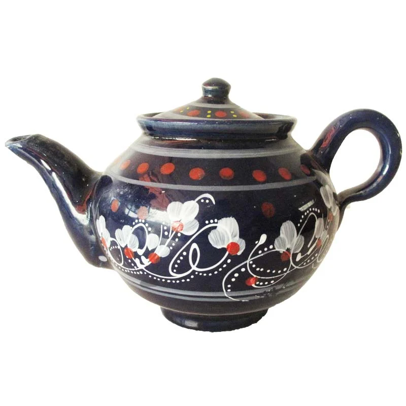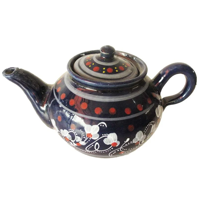 قوری سفالی طرح دار | رنگ: سرمه ای