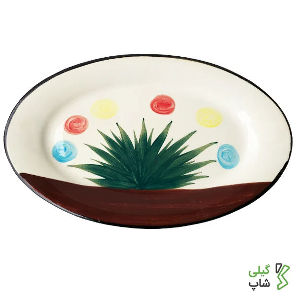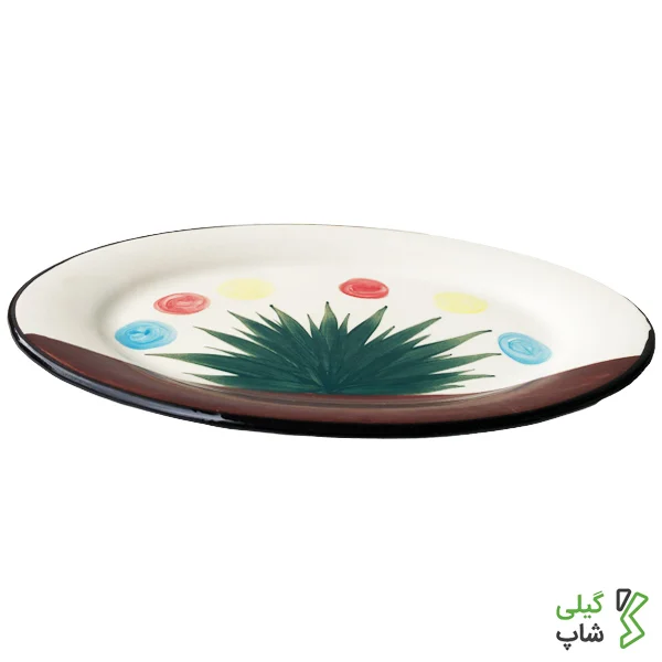 دیسی که هم اکنون مشاهده می کنید، دیسی مناسب برای سرو انواع پلو های ایرانی و خارجی است که ارتفاع آن از سطح زمین به 2 و طول و عرض آن به ترتیب 36 و 21 سانتی متر است. اگر به طراحی این محصول توجه کنید بدون شک شکل برگ و دایره های چند تکه رنگارنگ نظر شما را به سوی خود جذب می کند.