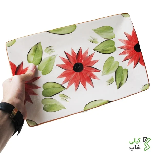 دیسی که هم اکنون مشاهده می کنید، دیسی مناسب برای سرو انواع پلو های ایرانی و خارجی است که ارتفاع آن از سطح زمین به 3 و طول و عرض آن به ترتیب 33 و 21 سانتی متر است. اگر به طراحی این محصول توجه کنید بدون شک طراحی گل و برگ های زیبای آن نظر شما را به سوی خود جذب می کند.