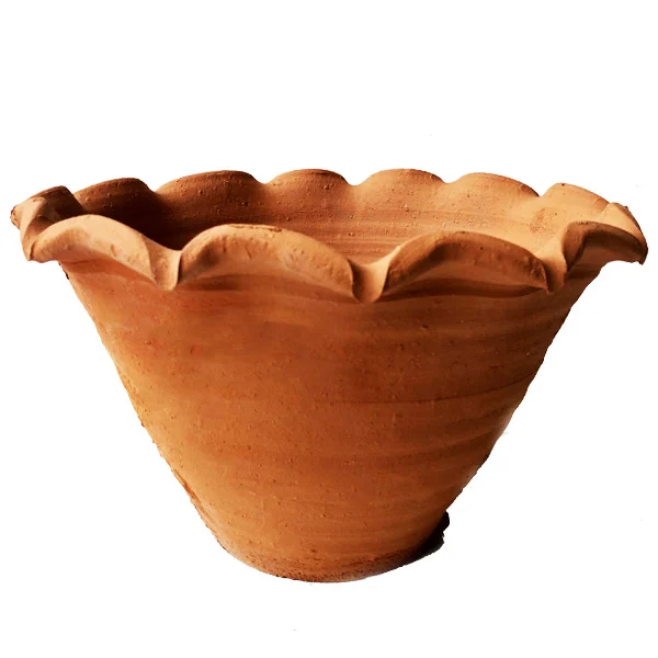 بررسی مشخصات گلدان سفالی خام لبه چین دار بزرگ