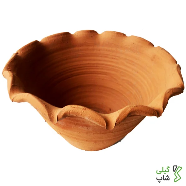 بررسی مشخصات، قیمت و گلدان سفالی خام لبه چین دار بزرگ