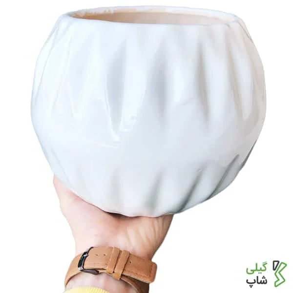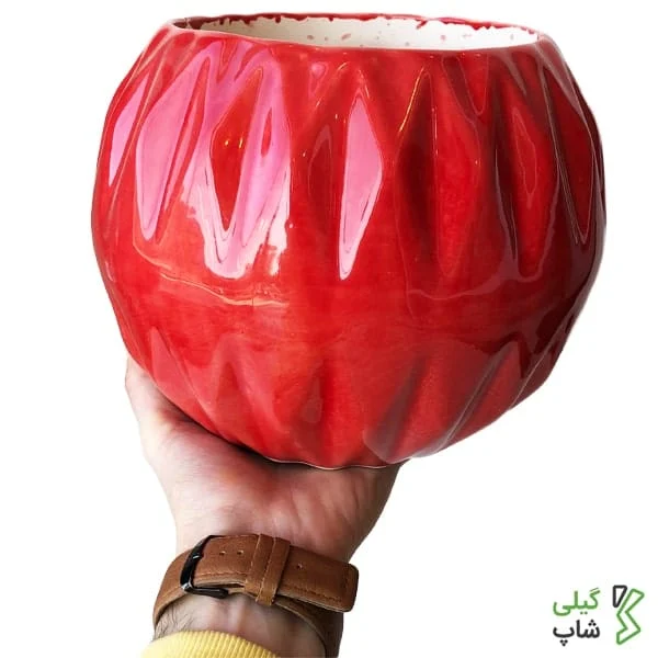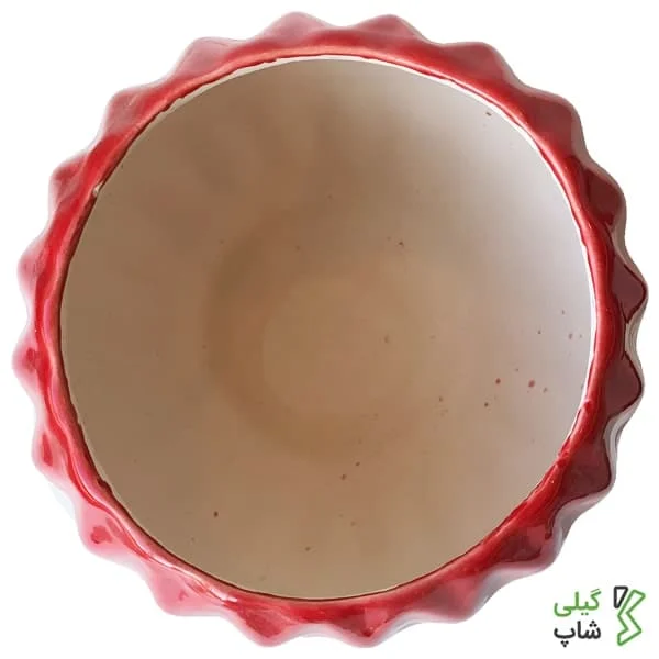گلدان سفالی طرح گرد حاشیه دار کد: g-012 از دیگر گلدان های سفالی – سرامیکی موجود در فروشگاه گیلی شاپ است که با ظاهر بسیار زیبا و جذاب خود می تواند به عنوان یک گلدان سفالی در منزل، محیط کار و… استفاده شود. ارتفاع این محصول از سطح زمین به 17 و قطر دهانه ورودی آن به 15 سانتی متر می رسد. این محصول سفالی، جنس آن از سرامیک بوده و با رنگ های متنوع خود جذابیت و خیره کنندگی بسیار بالایی دارد. در قسمت زیرین این محصول سوراخی به عنوان زهکش وجود ندارد، اما در هنگام ثبت سفارش می توانید در بخش اعلام کنید که تا با استفاده از دریل، سوراخی به عنوان زهکش به آن اضافه شود. این محصول جدا از زیرگلدانی بوده و برای تهیه آن می توانید به بخش “خرید زیر گلدانی” مراجعه کنید. همچنین توجه داشته باشید که این محصول در 3 رنگ قرمز، سفید و آبی موجود است.