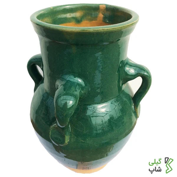 اگر نگاهی به ظاهر خمره سفالی کوچک گیلی شاپ بیاندازید متوجه خواهید شد که سرتاسر این محصول توسط لعابی خوش رنگ و به رنگ آبی فیروزه ای پوشانده شده است، لعاب در واقع پوشش شفافی است که بر روی محصولات سفالی به دلیل حفظ استحکام آن ها کشیده می شود. لازم به ذکر است که اکثر خمره های سفالی دارای لعاب می باشند اما برخی دیگر نیز به خمره های سفالی خام معروف می باشند که در فروشگاه اینرتنتی گیلی شاپ دو سایز کوچک و بزرگ آن ها موجود است.