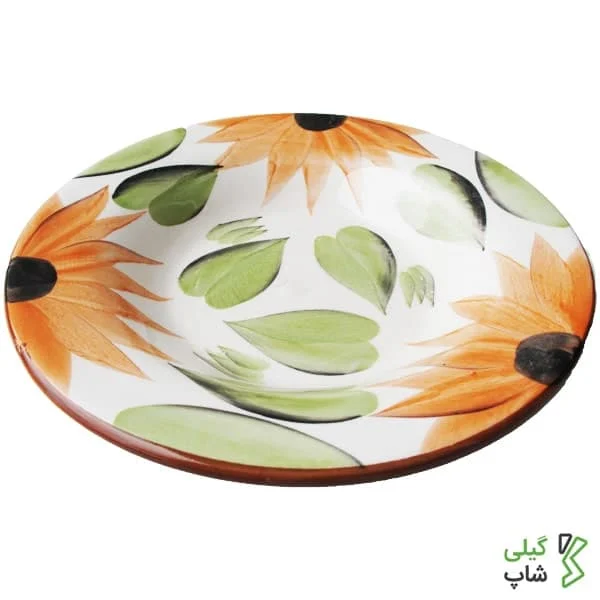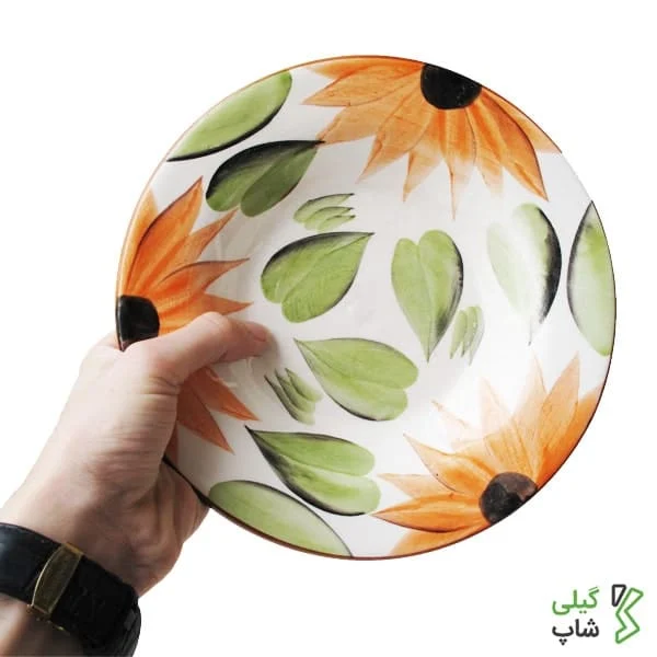 بشقابی که هم اکنون مشاهده می کنید، محصولی مناسب برای سرو انواع خورشت های ایرانی و خارجی است که ارتفاع آن از سطح زمین به 4 و قطر دهانه ورودی آن به 21 سانتی متر می رسد. اگر به طراحی این محصول توجه کنید بدون شک طراحی گل و برگ های زیبای آن نظر شما را به سوی خود جذب می کند.